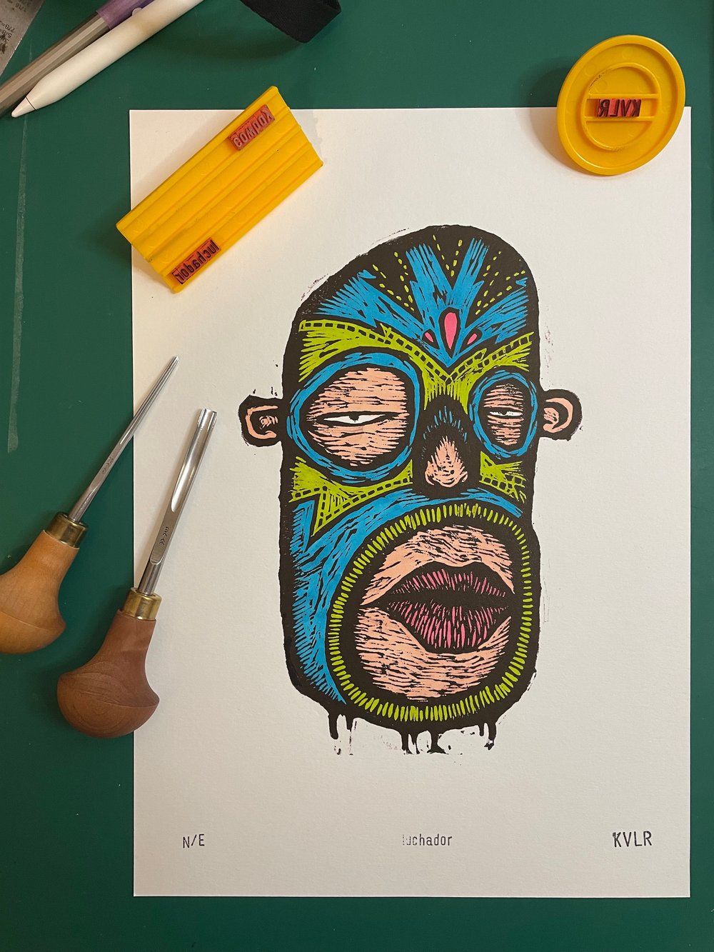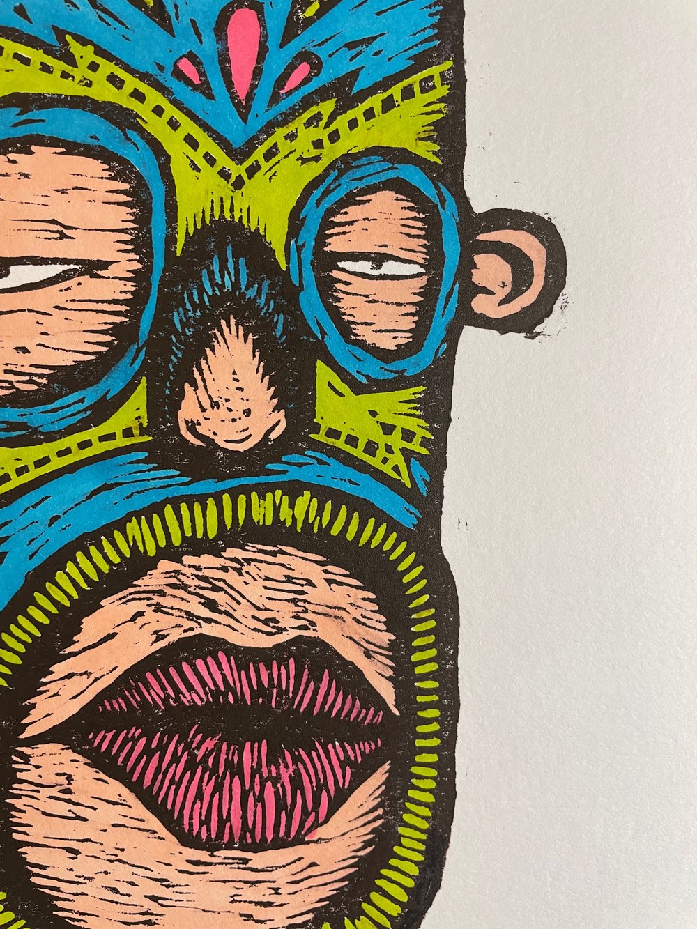 Lino cut print on 300gsm cold pressed acid free paper.